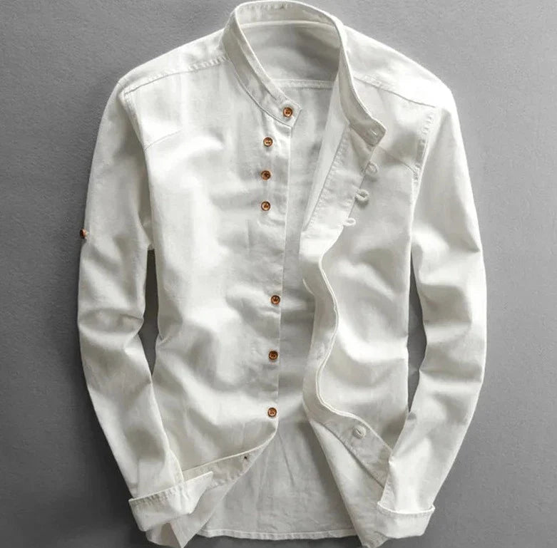 Åndbar blanding af hør og bomuld: Materialerne af høj kvalitet sikrer, at du føler dig godt tilpas i enhver situation, mens du nyder skjortens kulturelle charme.